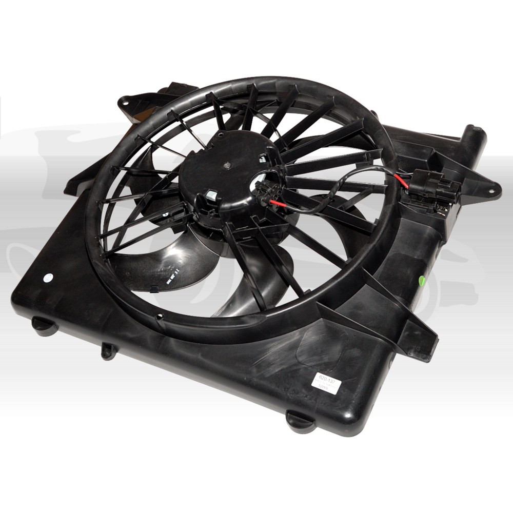 Lüftereinheit für den Motorwasserkühler, inkl. Elektromotor, Lüfterblatt und Gehäuse.
