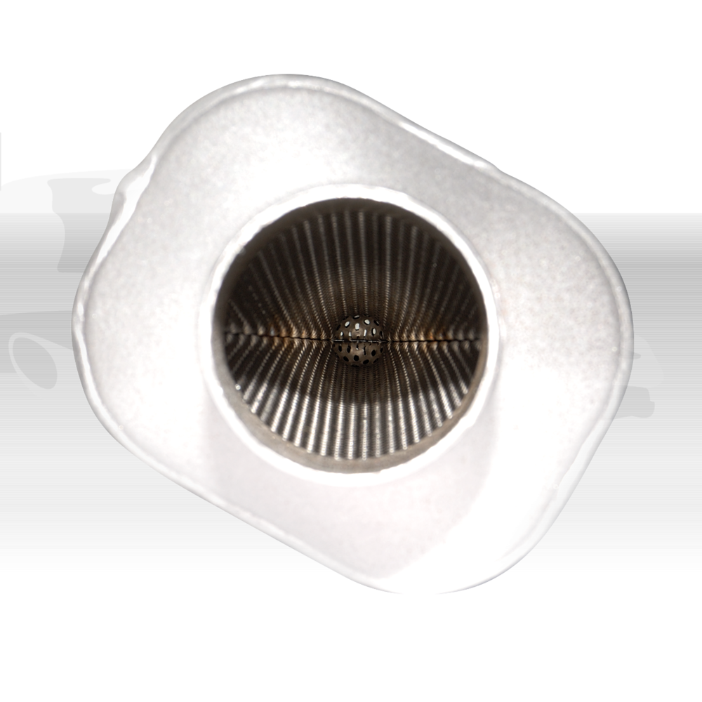 Ein weiterer Vorteil ist der speziell von Flowmaster berechnete Gitterkegel, der nicht nur die Schallwellen bricht, sondern auch für eine bessere Leistungsentfaltung sorgt als übliche Durchgangsdämpfer.