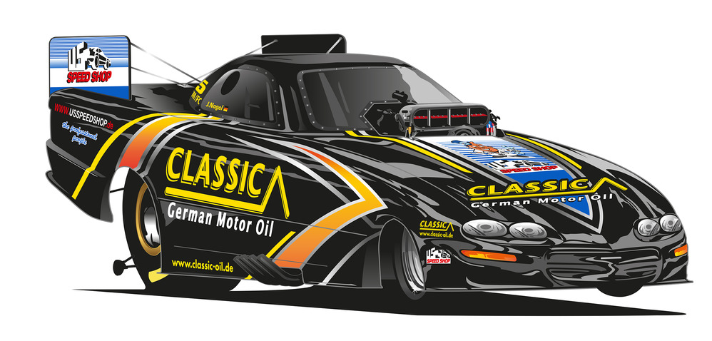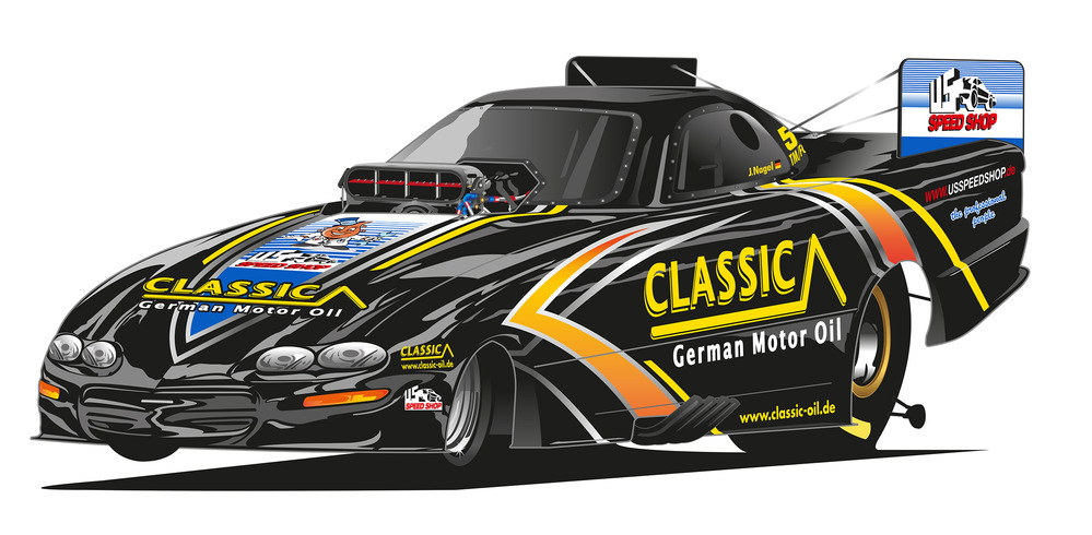 Ihr seht hier eine Illustration von Jürgen Nagel's TOP METHANOL FUNNY CAR