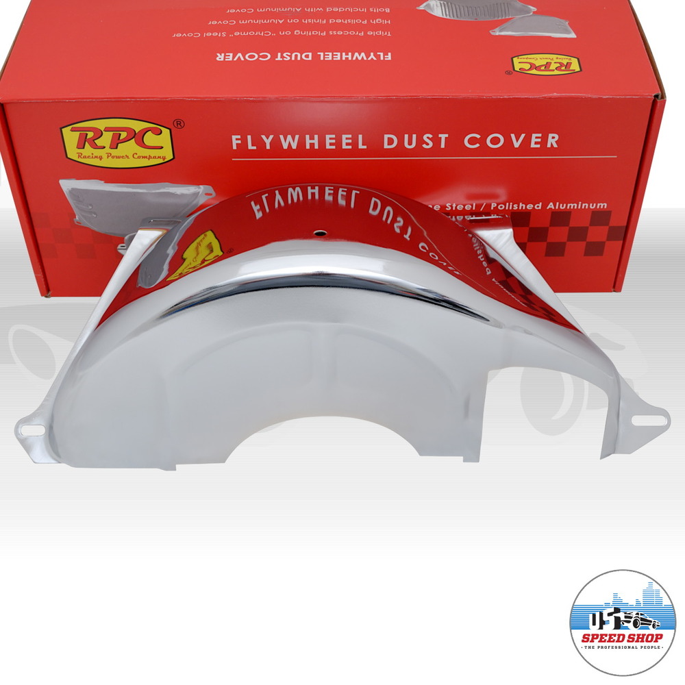 Racing Power Company's verchromte Flexplate-Abdeckung verhindert effektiv das Eindringen von Fremdteilen und Straßendreck in das Starterkranz- / Wandlersystem. Dank ihrer passgenauen Fertigung verschließt sie sauber die untere Öffnung des Drehmomentwandlergehäuses.